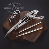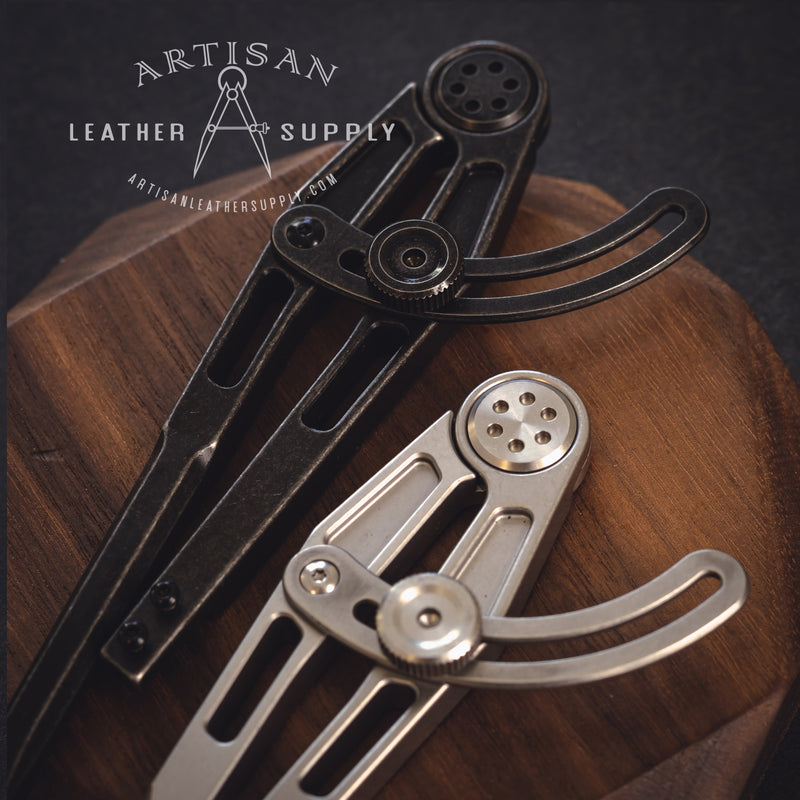 A next level divider that does more than just scribing stitch lines. Unlike the standard version, this divider has an interchangeable leg design to accept different tips. The complete kit includes a sharp scratch tip, 3mm groover tip and a second adapter to fit a pen or pencil. (Requires a T-6 Torx screw driver, not included)
